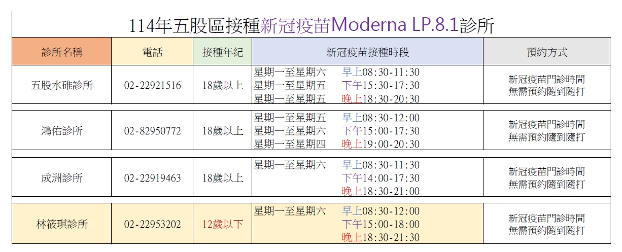 *如衛生所開放時間無法符合需求,建議可詢問→五股區新冠疫苗合約診所